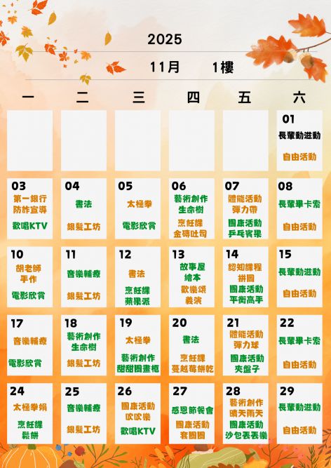 一樓活動課表: