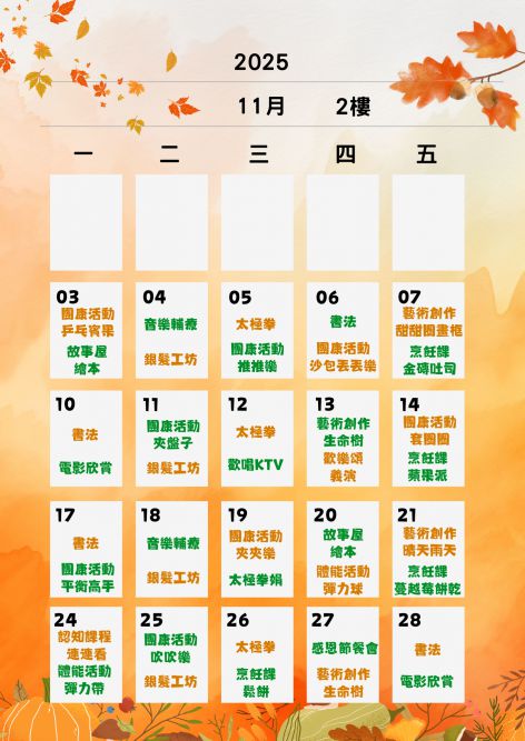 二樓活動課表: